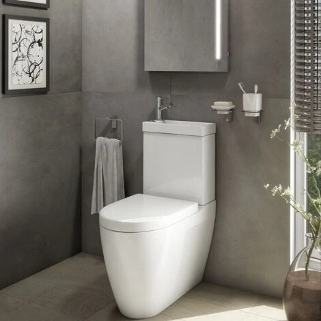 Cistern with basin mounted in the top Not only does the cistern have a dual flush it also features a basin mounted in the top. Perfect for small spaces, this unit cleverly combines the WC and basin in one simple design creating a unique and fantastic space-saving piece that is ideal for cloakrooms and small ensuites. |