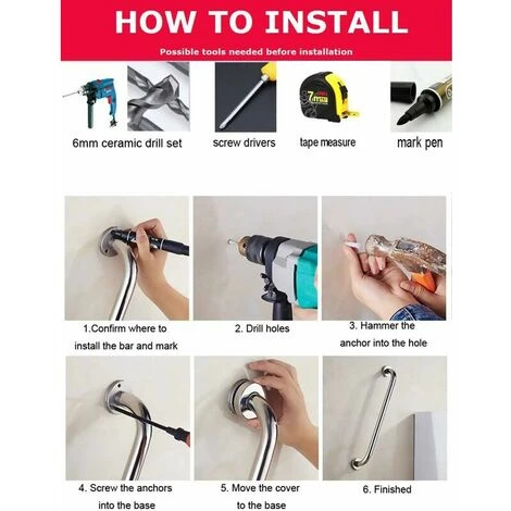 stairs, laundry room or other humid environments to further prevent falls, to effectively prevent slipping or falling to the ground. - Easy to Install & amp; Versatile Installation Options – You can easily mount this grab bar vertically, horizontally or diagonally as needed. The included grab bar and mounting hardware are suitable for installation