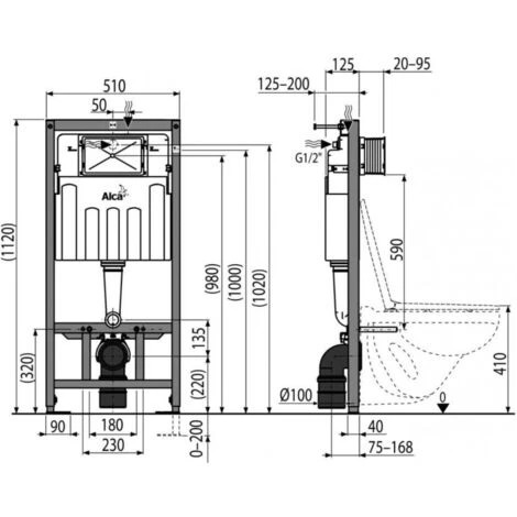 Features of the Self-supporting frame for wall-hung toilets (AM101/1120-DN100) :