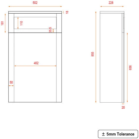 -Dimensions: (W x D x H): 502x 228 x 855mm