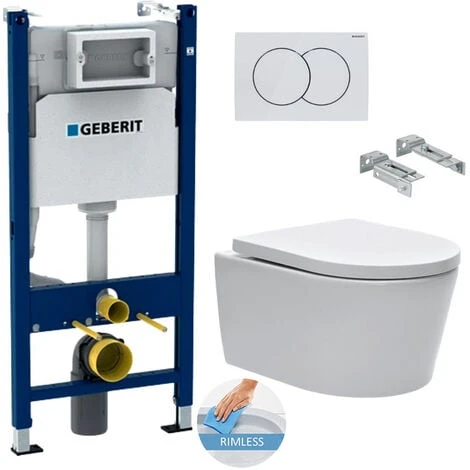 Features of the Toilet set 112cm Support Frame + Swiss Aqua Technologies rimless bowl + White flush plate (SATrimlessGeb3)