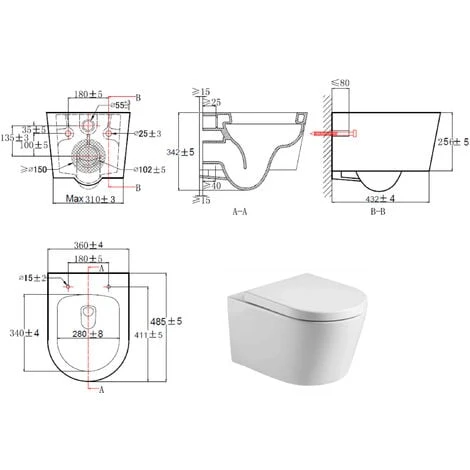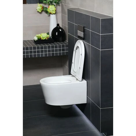 - Swiss Aqua Technologies Rimless wall-hung toilet with invisible fixing and fall-brake flap (SATrimless)