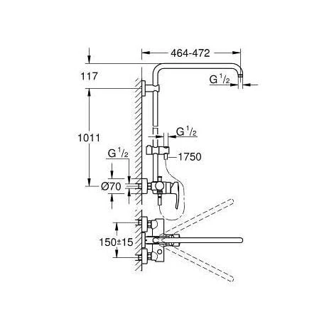 - Consisting of: 450 mm horizontally adjustable shower arm