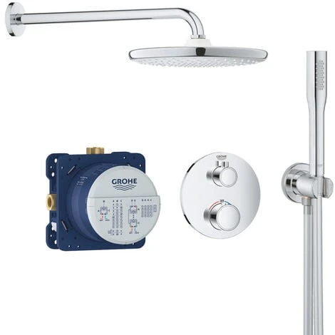Features of the Grohtherm Concealed shower set with thermostatic mixer, XXL 250 head shower and hand shower, Chrome (34727000-XXL2) :