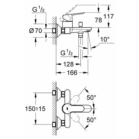 - Automatic diverter: bath/shower (shower bottom outlet 1/2 with integrated non return valve)