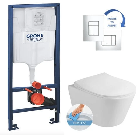 Features of the Toilet Set Rapid SL Support frame + Lucco Avva rimless bowl + Softclose seat + chrome plate (RapidSL-Avva-1A) :