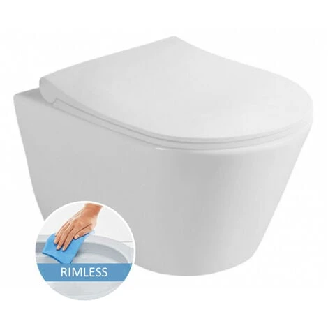 - Lucco Avva Rimless wall hung toilet with soft close seat, White (Avvarimless)