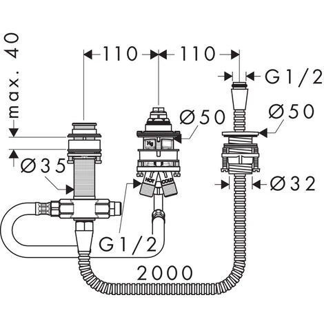 Features of the Basic set for 3-hole rim-mounted single lever bath mixer with rim support hose (13439180) :