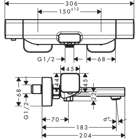 • Centre distance: 150 mm ± 12 mm