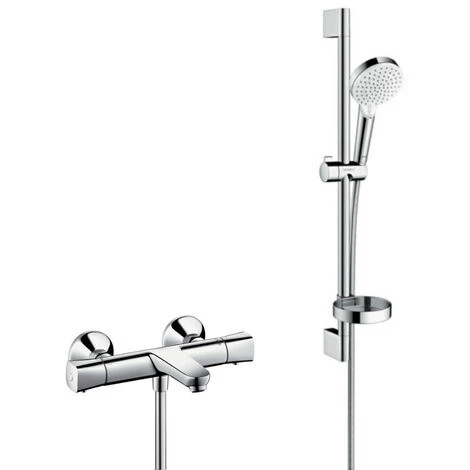 - Hansgrohe Crometta Vario shower set with two-jet hand shower, Unica’Croma bar 65 cm and soap dish (26553400)