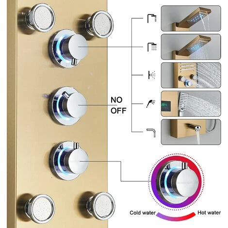 PREMIUM QUALITY : Whirlpool Shower Column made of high quality 304 stainless steel, durable and will not rust, stain or blur. Black finish, highly scratch resistant and makes the shower easy to clean;WITH ELEGANT LED LIGHT (No need battery;It is hydroelectric power)