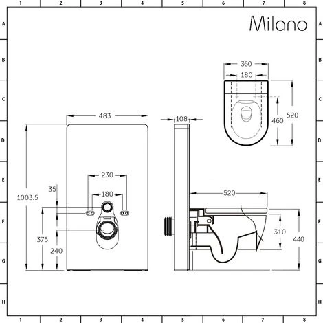 – Dimensions (WxDxH): 483mm x 108mm x 1003mm (WC unit); 360mm x 520mm x 310mm (toilet pan)