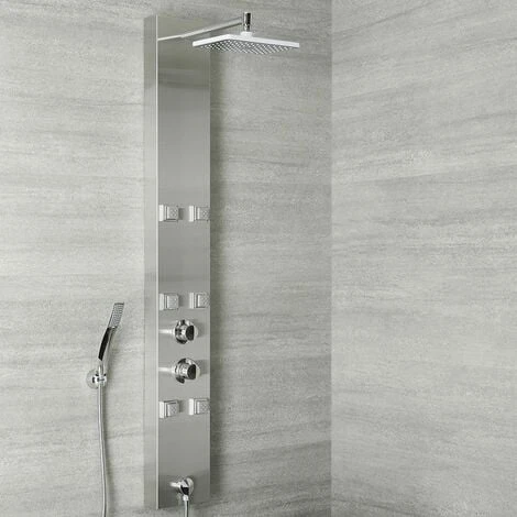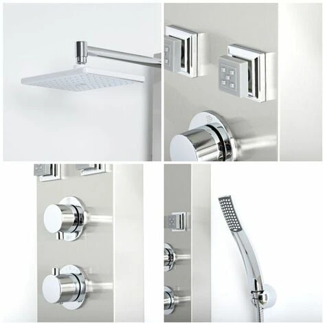 Please note: The shower head, hand shower and body jet functions cannot be operated simultaneously. The top of the shower head has a white finish but the rest is chrome.