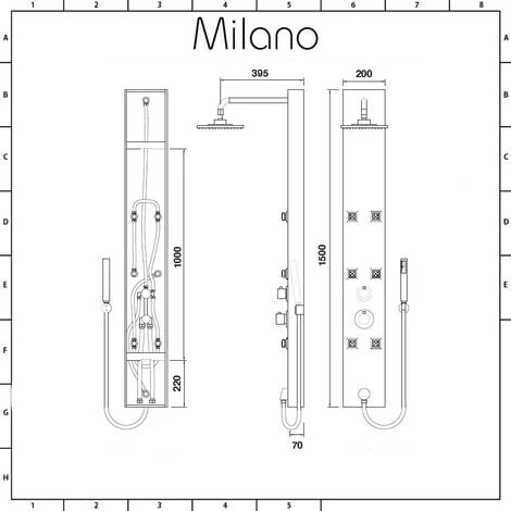 – Dimensions (WxDxH): 200mm x 70mm x 1500mm