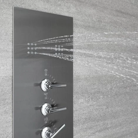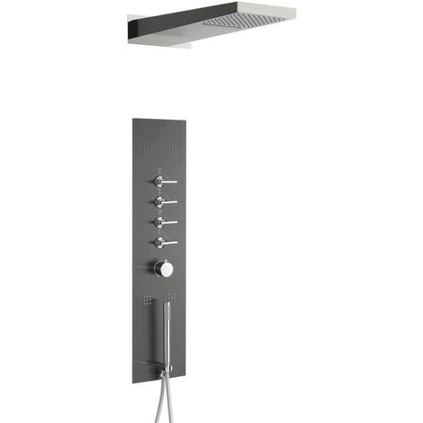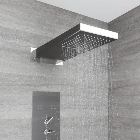 – Includes a fixed shower head with waterblade, pencil hand shower and four body jets