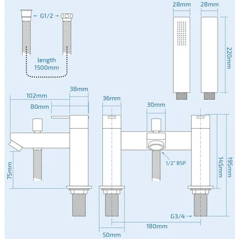 Modern Design Deck Mounted Bath Shower Mixer Tap With Handset Kit