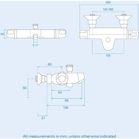 - 1 X Wall Mounted Thermostatic Shower Mixer & Bath Filler Valve