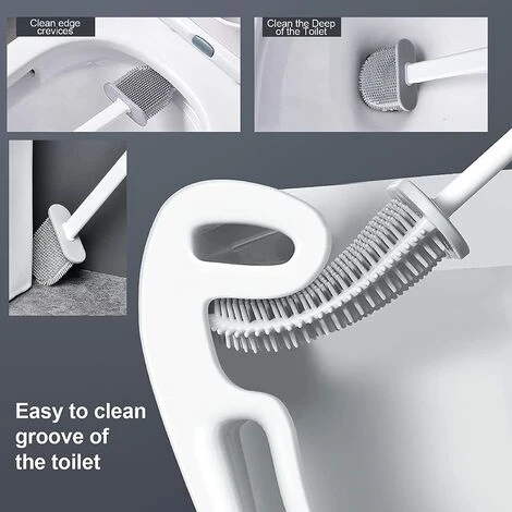 【Deep Cleaning】Silicone toilet brush has a flat D-shaped design with an ergonomic long handle to thoroughly clean other hard-to-reach places in the rim groove. Won’t tangle the hairs on the brush head and won’t damage the toilet’s glaze.