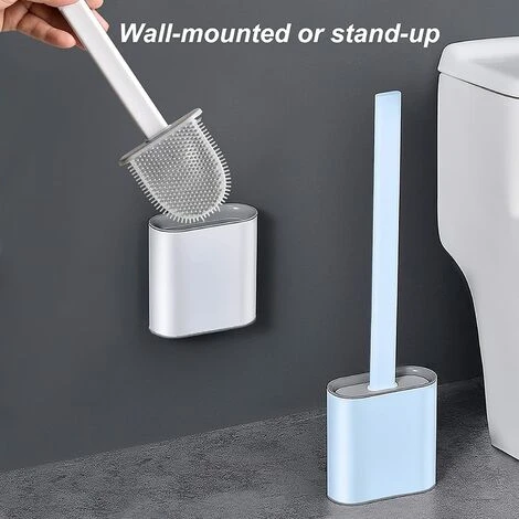 Toilet brush and holder, silicone toilet brush, deep cleaning toilet brush and holder and quick-drying holder kit, toilet brush with non-slip long plastic handle and flexible bristles