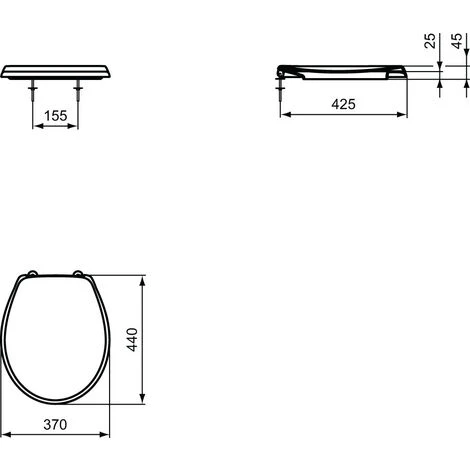 - Toilet seat for standard WC with normal white stainless steel hinges.