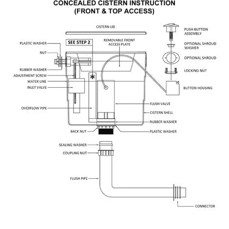 - Complete with flush pipe & hidden cistern internals (colour may vary)