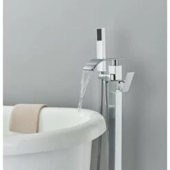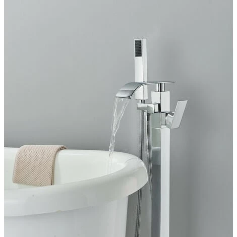 4.【Conception au sol】 – Robinet de bain autoportant, châssis de grand diamètre, sol plus stable, durabilité améliorée, match parfait avec la baignoire, profitez de l’heure du bain.La douche à main est un design moderne et élégant. Il est parfaitement intégré au robinet de baignoire principal.