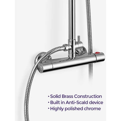 This solid brass round thermostatic exposed shower mixer – chrome dual kit riser pack is a sleek and modern design and a cost effective showering solution.