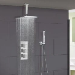 - Overhead shower dimensions – 200mm x 200mm x 8mm