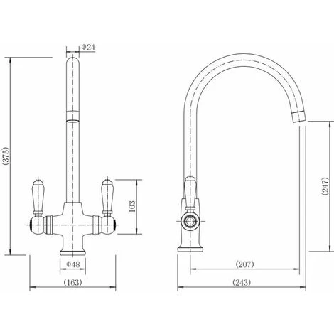 Sauber Traditional Mono Kitchen Sink Mixer Tap Twin Lever Handles Spout Chrome