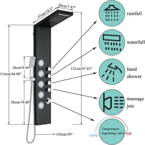 ❤4 Functions: rainfall shower head and waterfall shower head, handheld shower, body massage jets.You can work 4 functions at the same time, the key is water pressure.
