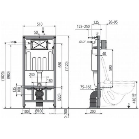 - For installation of wall-hung toilet bowls with a connection pitch of 180 mm or 230 mm