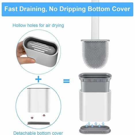 The base of the toilet brush is designed with draining holes to keep the brush clean and dry fast. Meanwhile, the upgraded detachable bottom prevents water co.ukom dripping to the floor, keeps the floor clean and dry. No more worries of wet floor after each