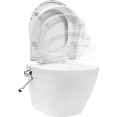 This wall-hung toilet, with a unique and timeless design, upgrades every bathroom. It is designed to save space and provide you with a cleaner bathroom. This toilet with rimless flushing function has a particularly durable and easy to care ceramic surface simplifying cleaning. It also guarantees years of use. Limescale and contaminants do not easily stick to the dirt-repellent surface. The soft-close mechanism prevents the toilet lid from falling down. Additionally, the toilet has a bidet nozzle for cleaning the buttocks and intimate areas of women. Mounting hardware is completely concealed, giving a sleek and seamless look.