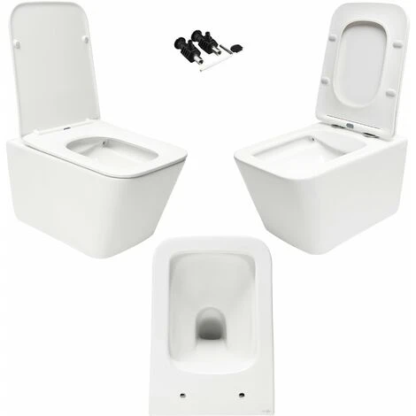 Square Rimless Wall Hung Hidden Fixation Toilet & Seat (White)