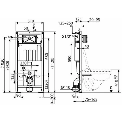 - (H) 1120mm x (W) 510mm x (D) Min.125mm – Max.250mm